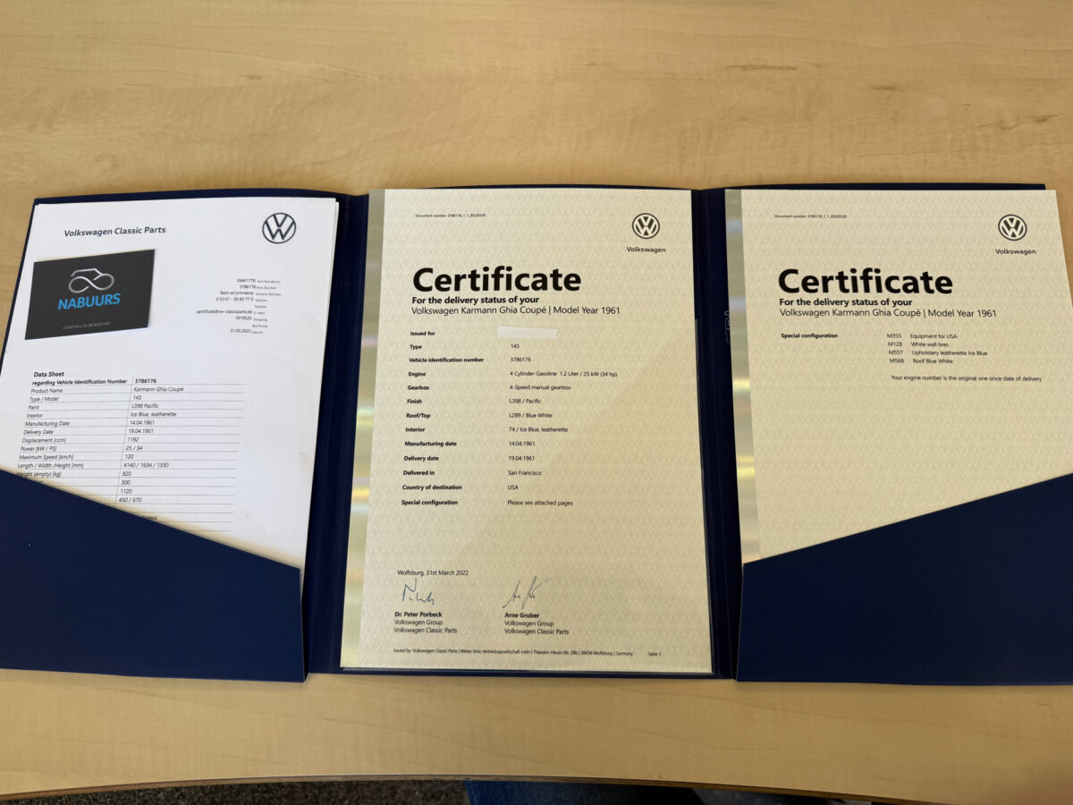 Deze auto is met oog voor detail en respect voor originaliteit gerestaureerd, wat hem uitermate geschikt maakt voor de liefhebber, verzamelaar of als investering. De elegante lijnen van de Karmann Ghia gecombineerd met de frisse Pacific Blue lak maken dit een echte blikvanger.